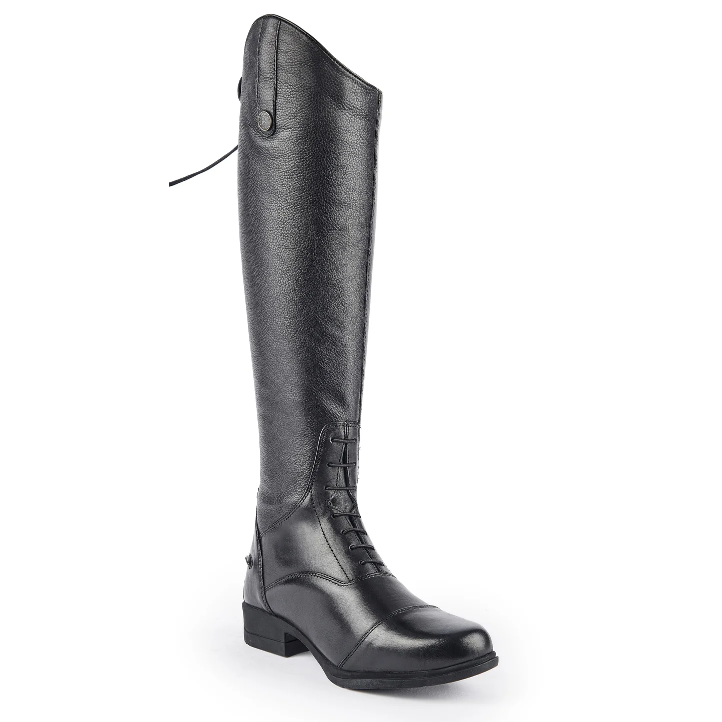The Gianna leather field riding boots add a polished, professional touch to your riding. A close leg fit is achieved by pairing hard wearing leather inner calves with softer outer panels that hug the leg. Stretch mock lace detail. Dressage cut tops with soft piqued leather inners. Rear YKK zips. WickAway linings for acclimatised feet. ActiveFlex insoles with Impact Support System. Moretta shock absorbing rubber soles with steel shanks.